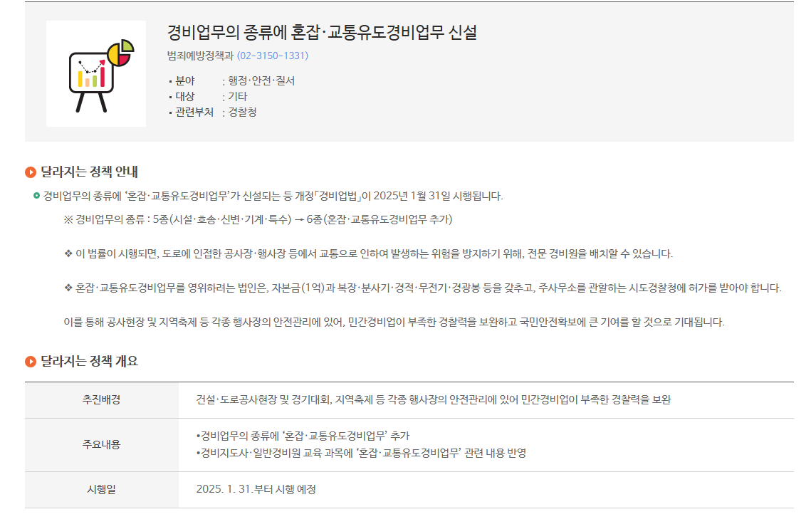 [법령] 경비업무의 종류에 혼잡·교통유도경비업무 신설