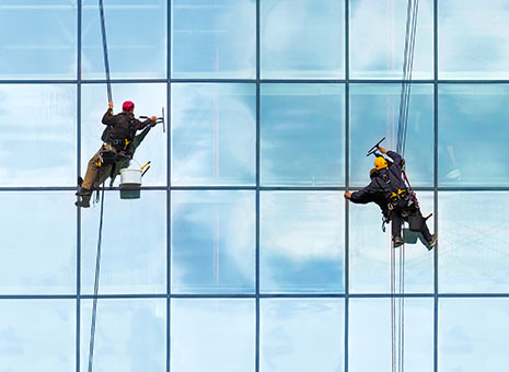 건물 외벽, 유리창, 카펫 등 고난도의 청소 작업을 위해 특수 장비와 청소제를 사용하여